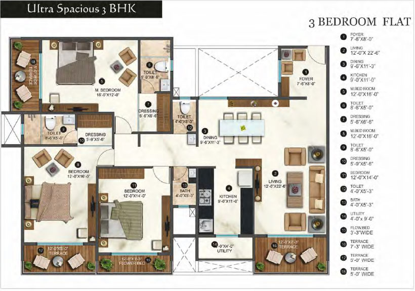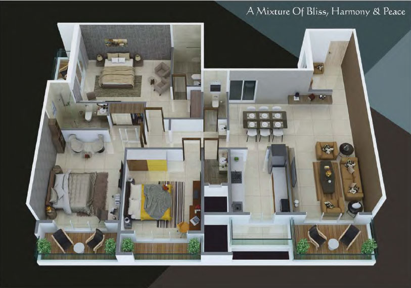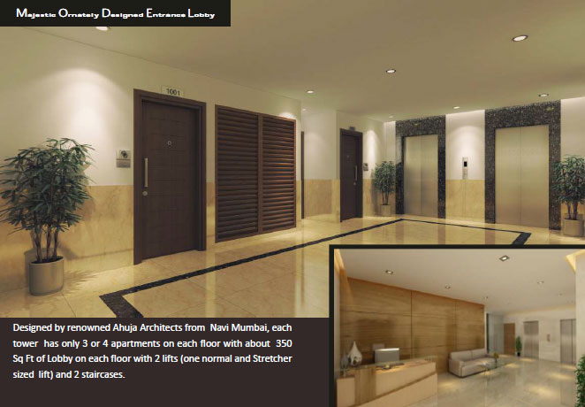 Concealed copper wiring for lights, fans, plugs and power plugs wherever Necessary. 20 Amps 3-phase supply for each unit with individual meter board. Power plug for refrigerator, grinder, chimney, Microwave oven and Aquaguard in kitchen. Power plugs for geysers in bathrooms. Power plugs for A/c in bedrooms.