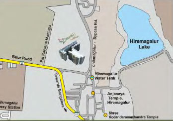 is just 10 minutes walk from the new Chikmagaluru Railway Station and is situated on the Belur road. The location is very ideal